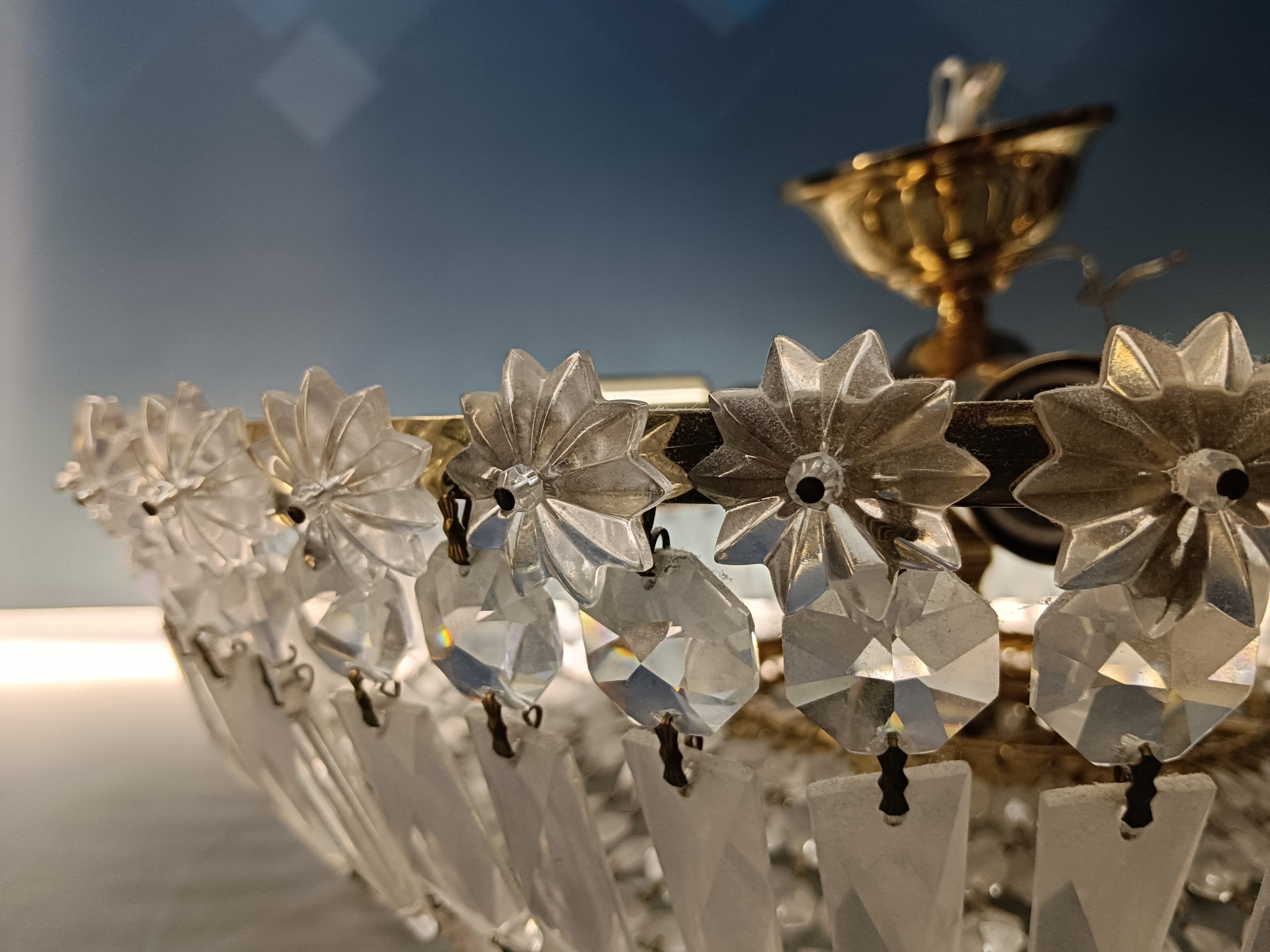 Tiene guardados los cristales que le faltan.( se han soltado, se ve en las fotos pero se pueden poner otra vez)