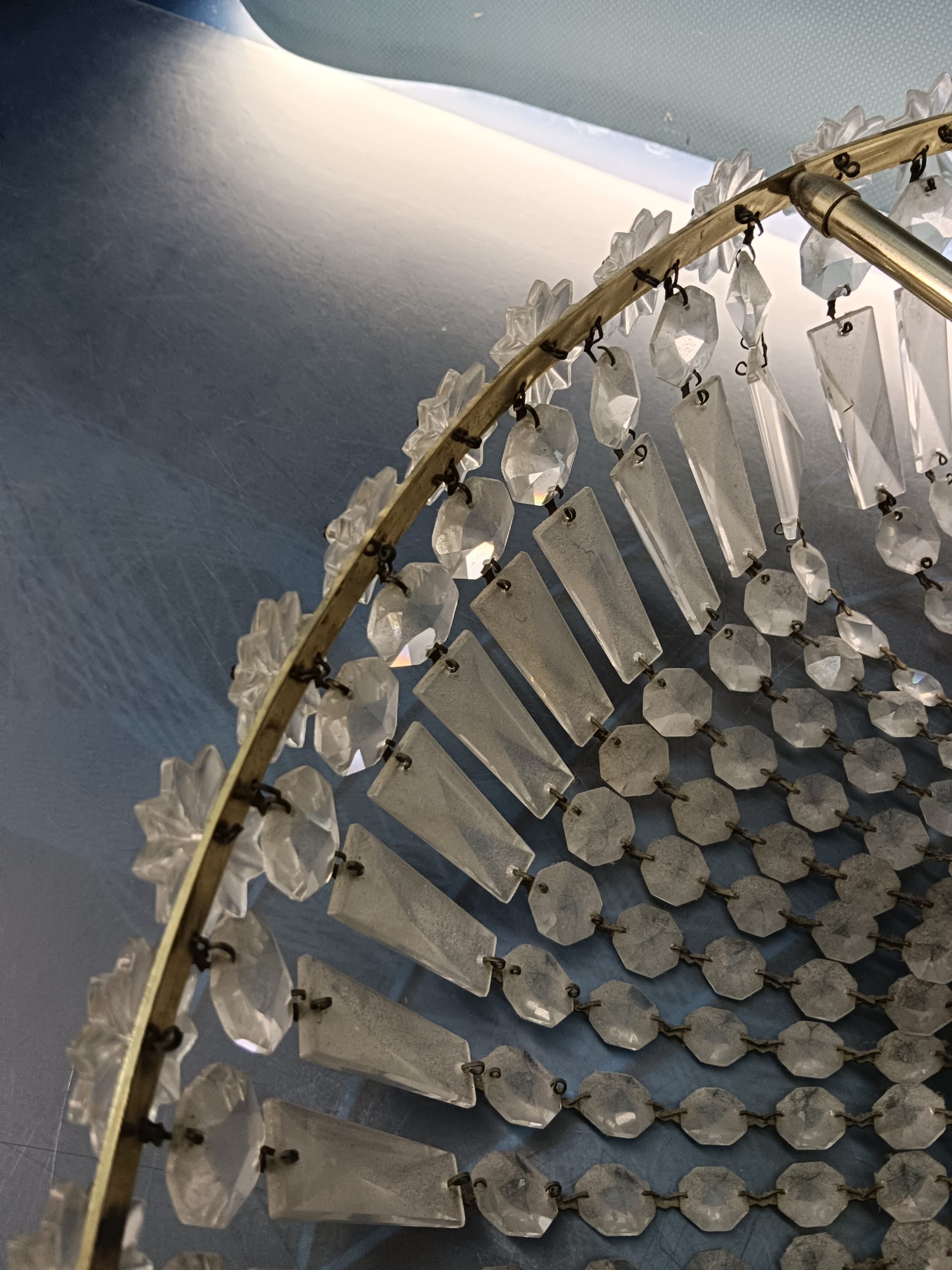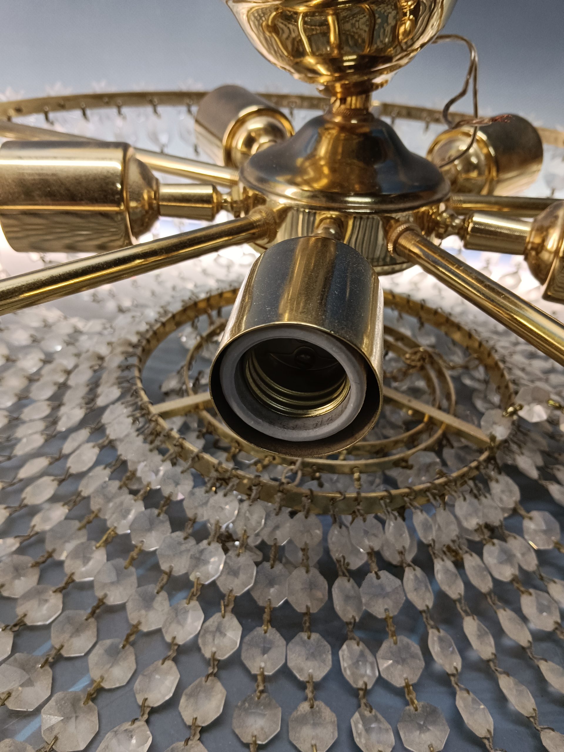 Preciosa Lámpara de latón y cristal , con colgantes, diametro 25 cm. El precio original era: 59,90€.El precio actual es: 49,90€.