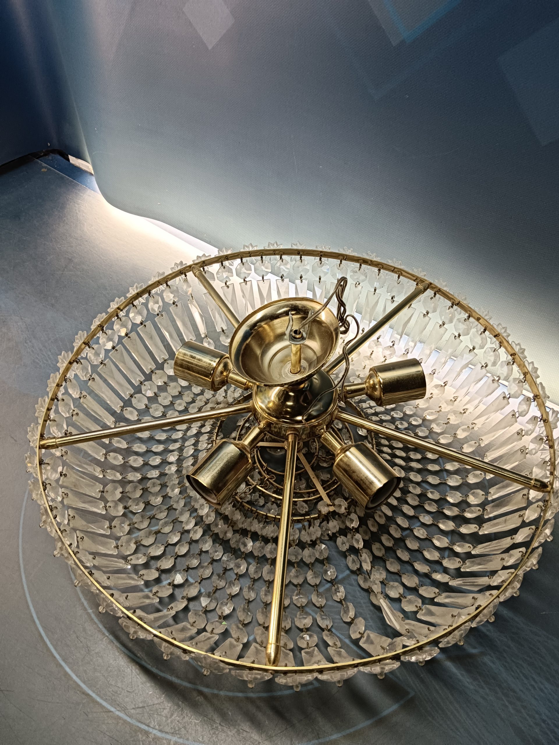 Preciosa Lámpara de cristal, 5 luces, mid century, cristal de roca, hollywood