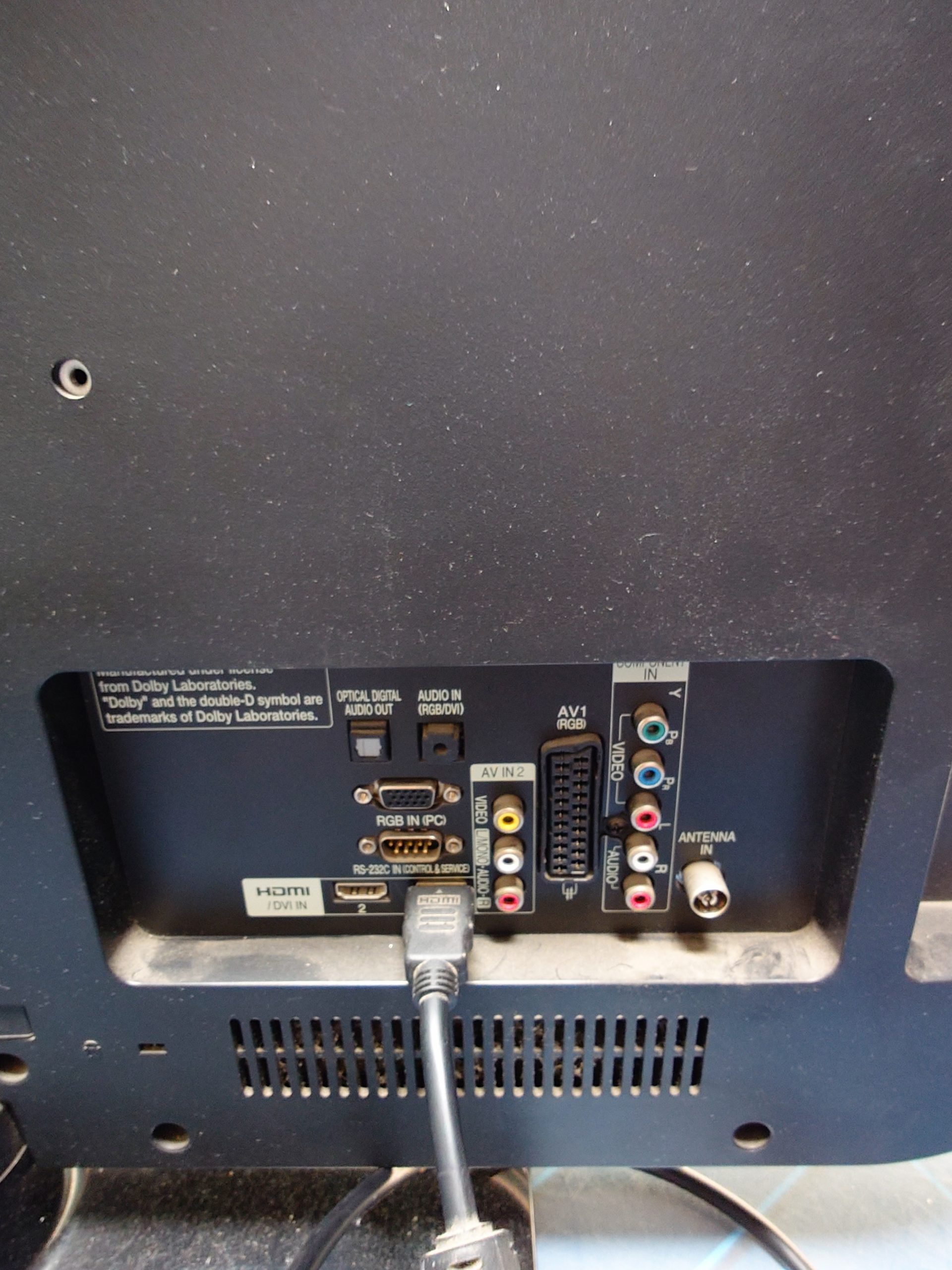 Televisor sin mando pero en perfecto estado con un mando fijo lateral dos entradas HDMI entrada euroconector y entrada por componentes y antena ideal para jugar con las consolas.