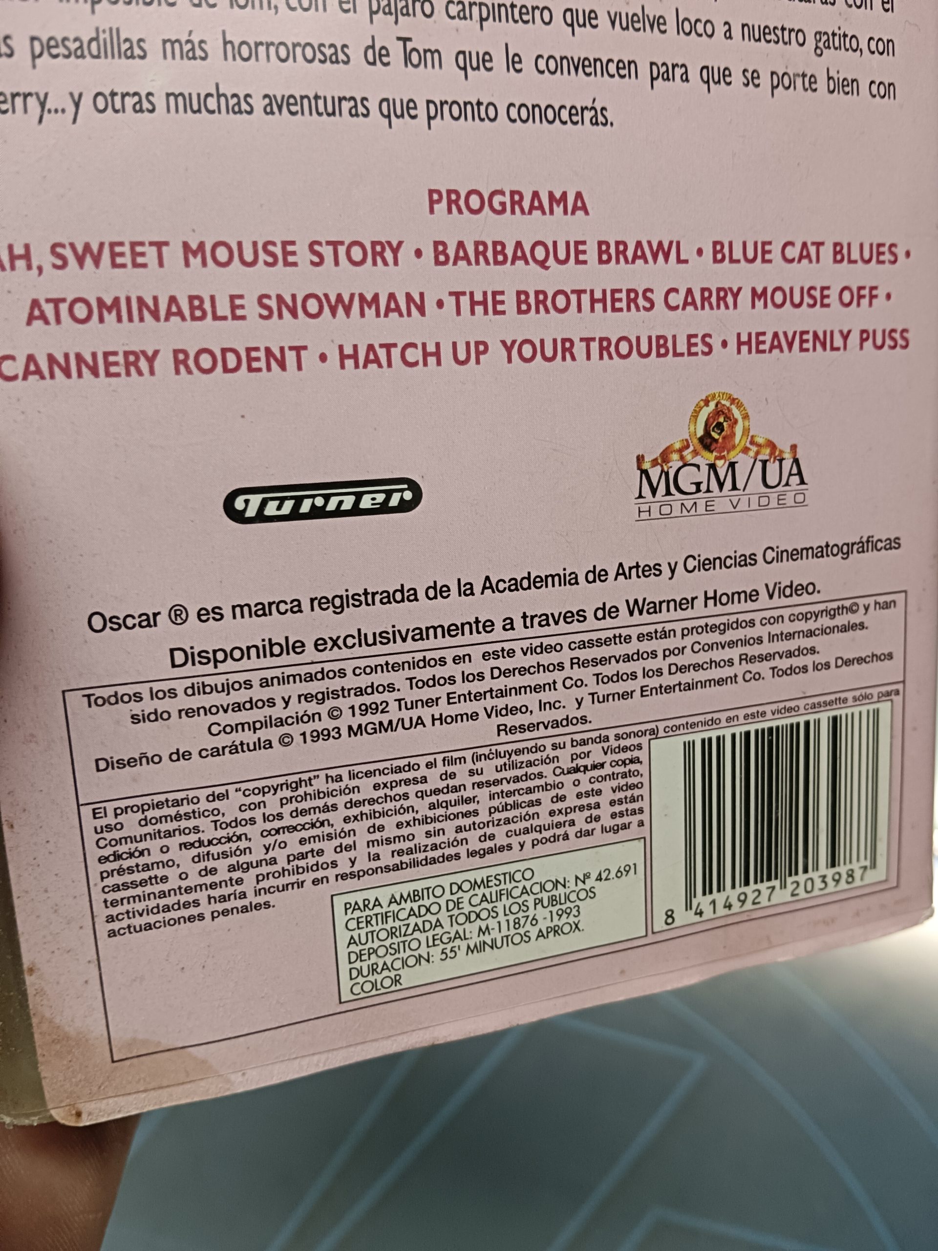 Vhs, Tom y Jerry, festival de diversion, warner, 1993, dificil de encontrar