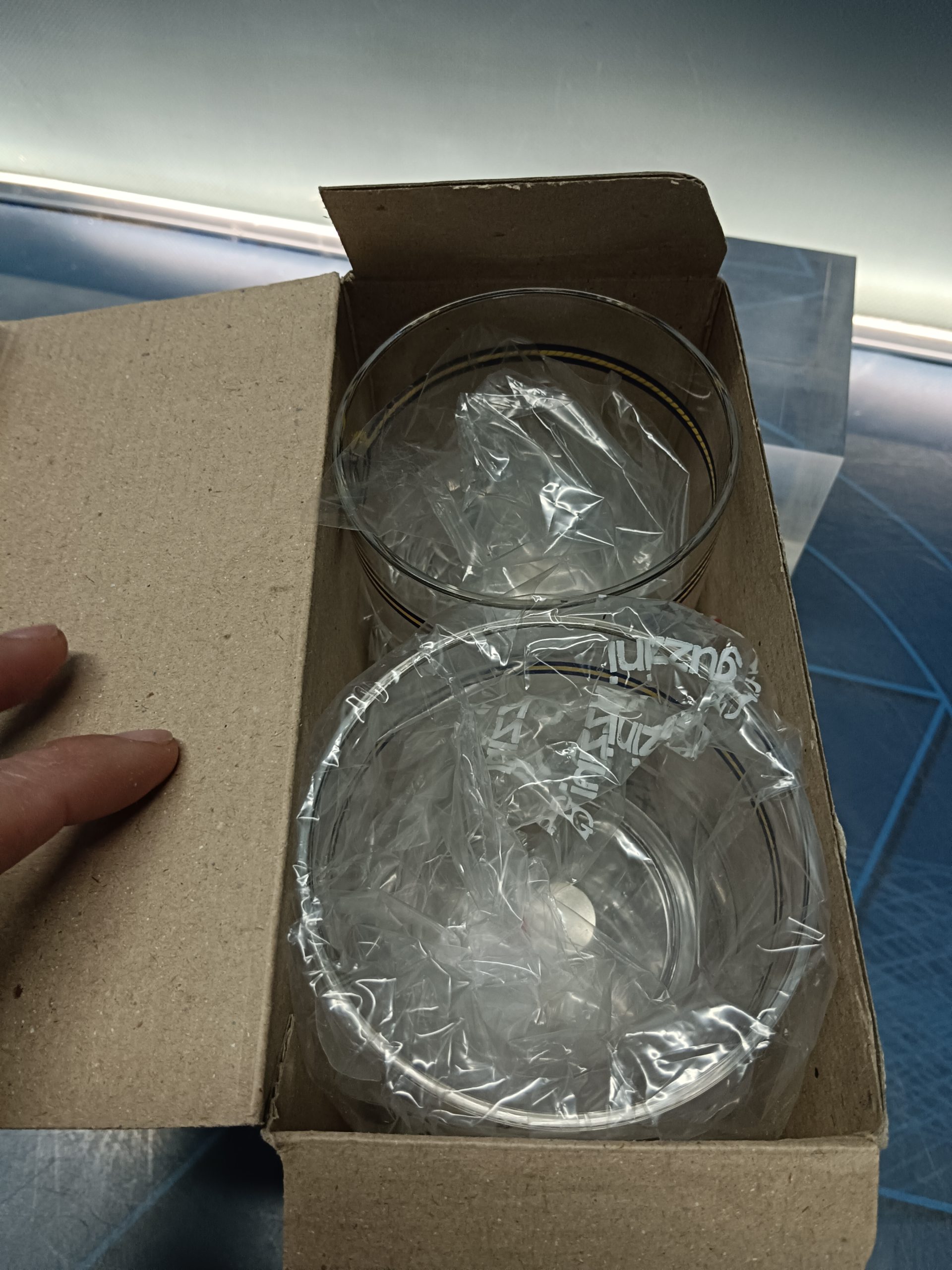 en su caja, plastico
