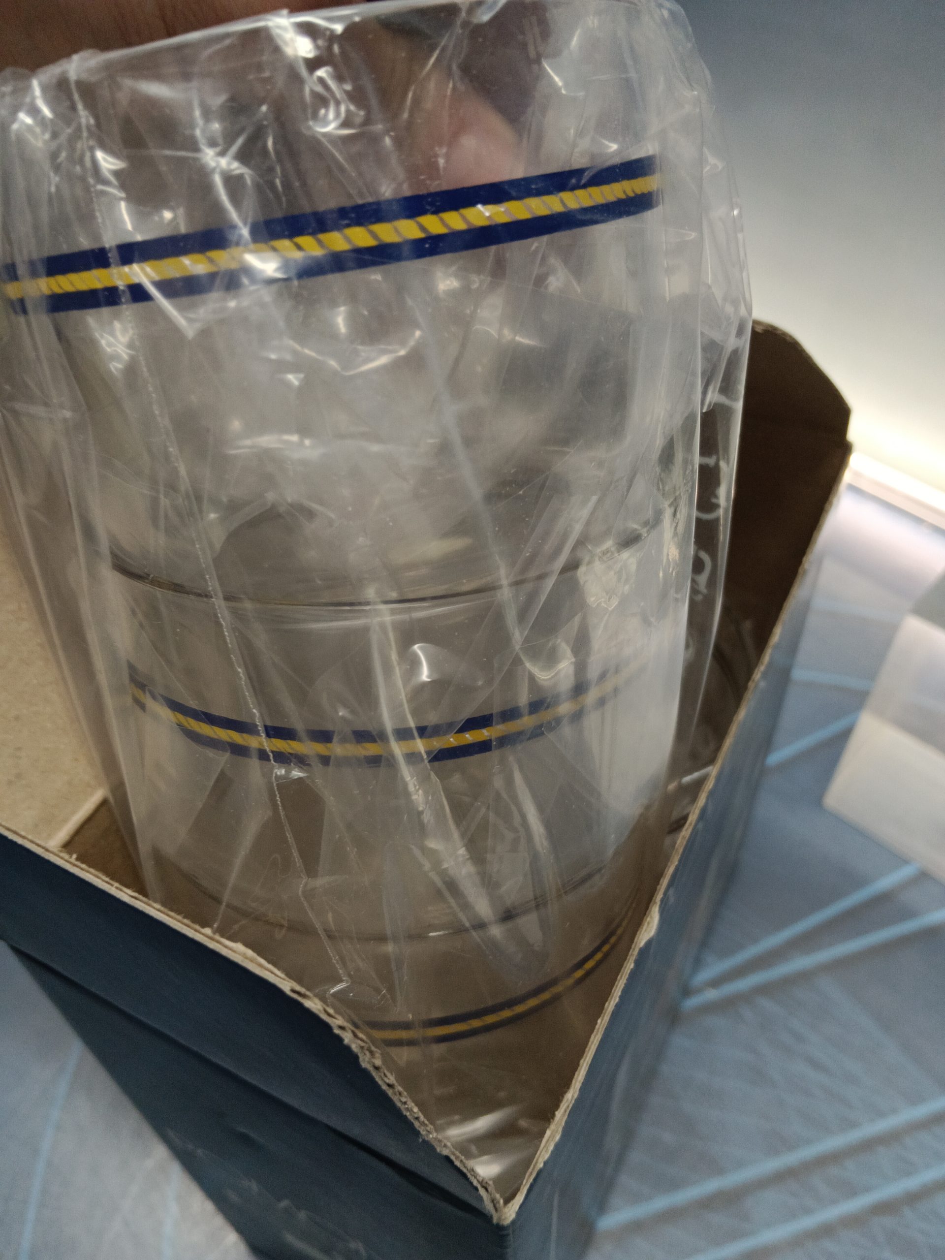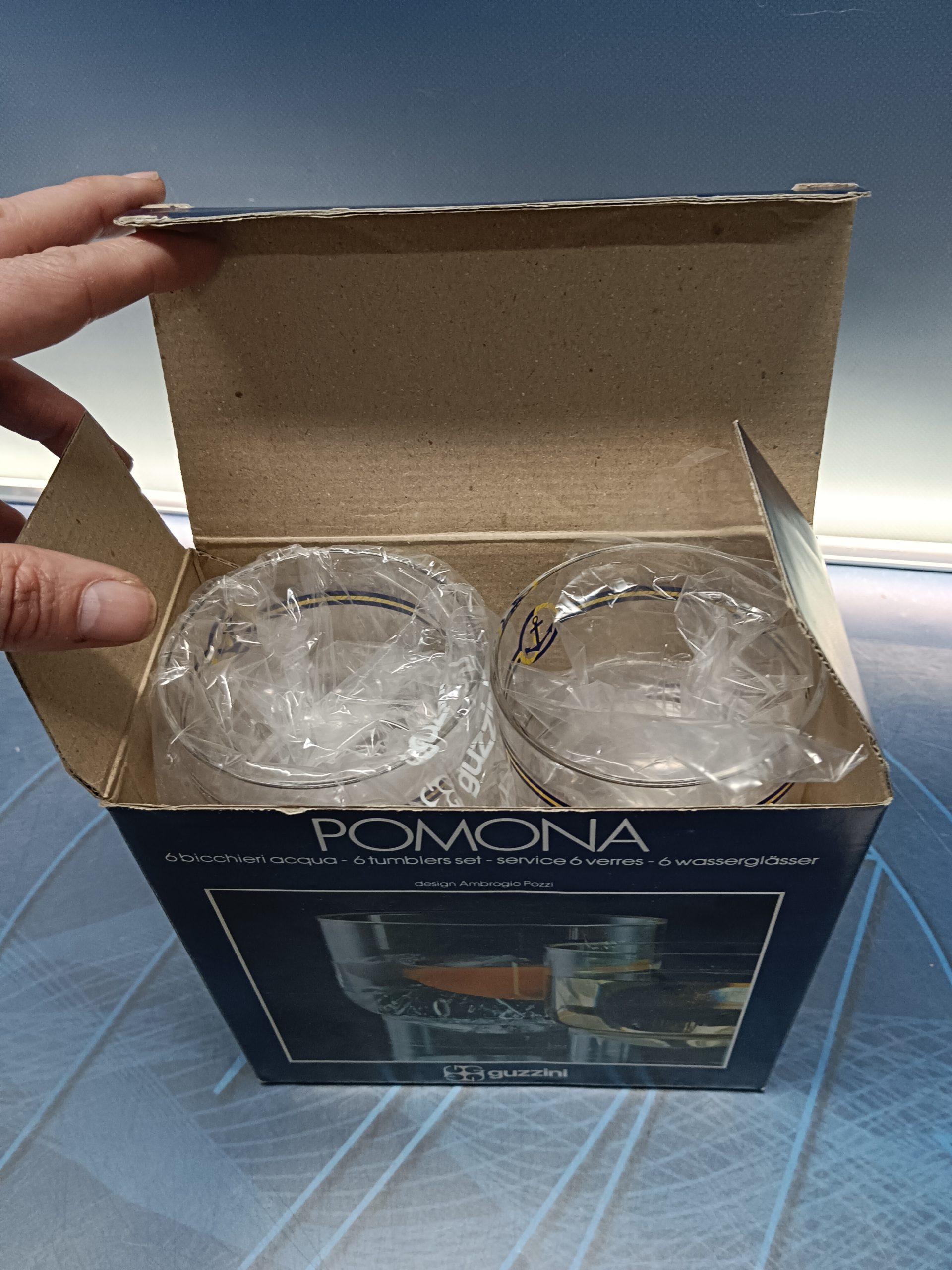 Vintage , vaso diseño lote 6 vasos guzzini , modelo Pomona, en su caja, 1968