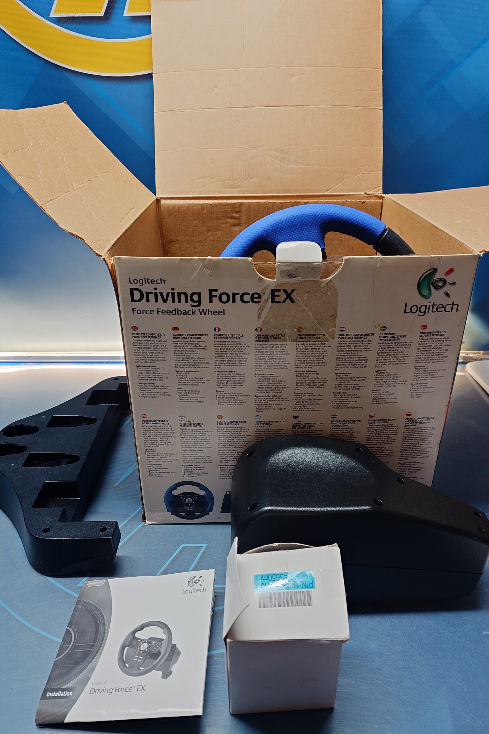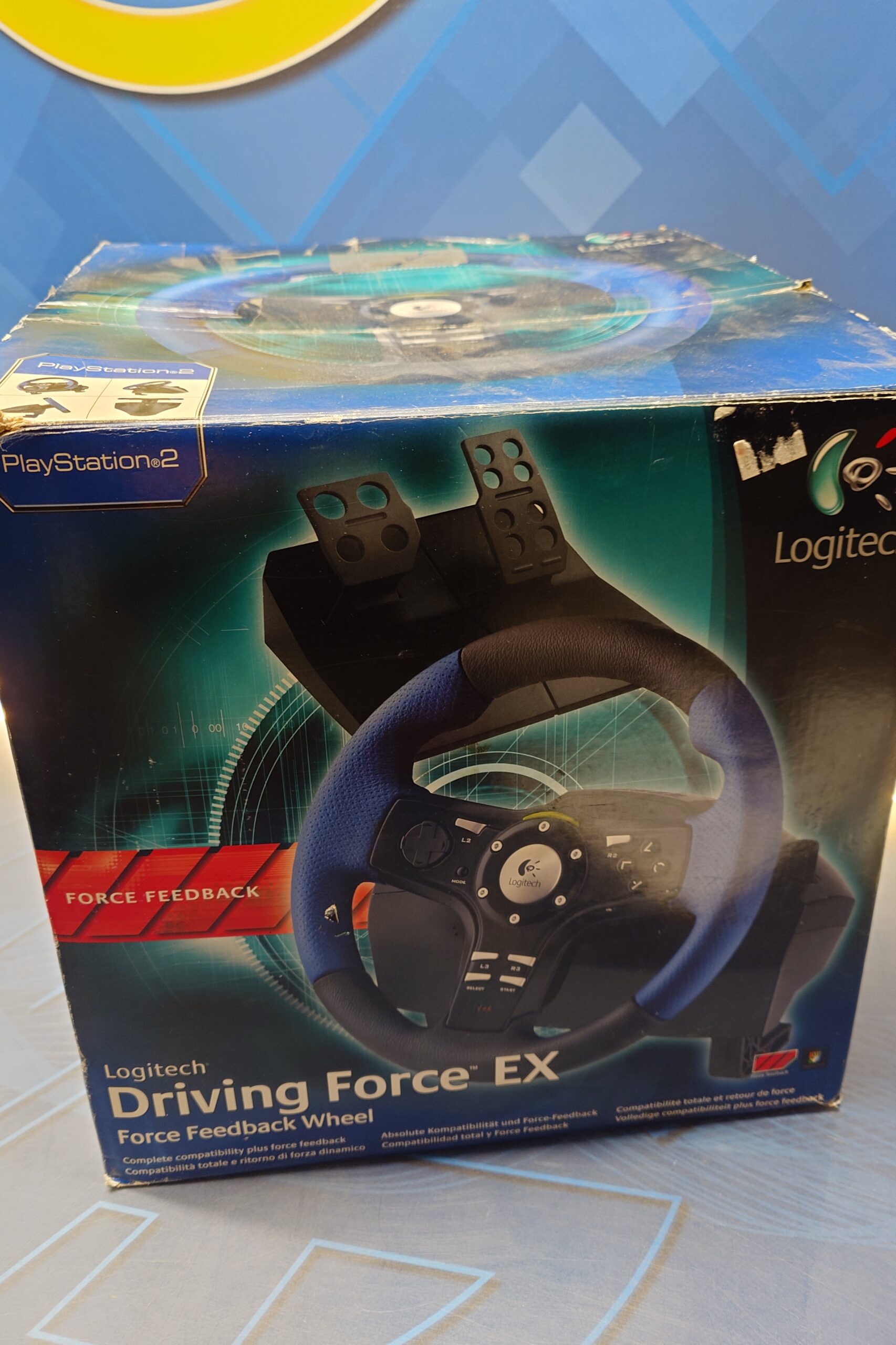 Volante Logitech Driving Force EX para PlayStation 2, sin usar y en perfecto estado.